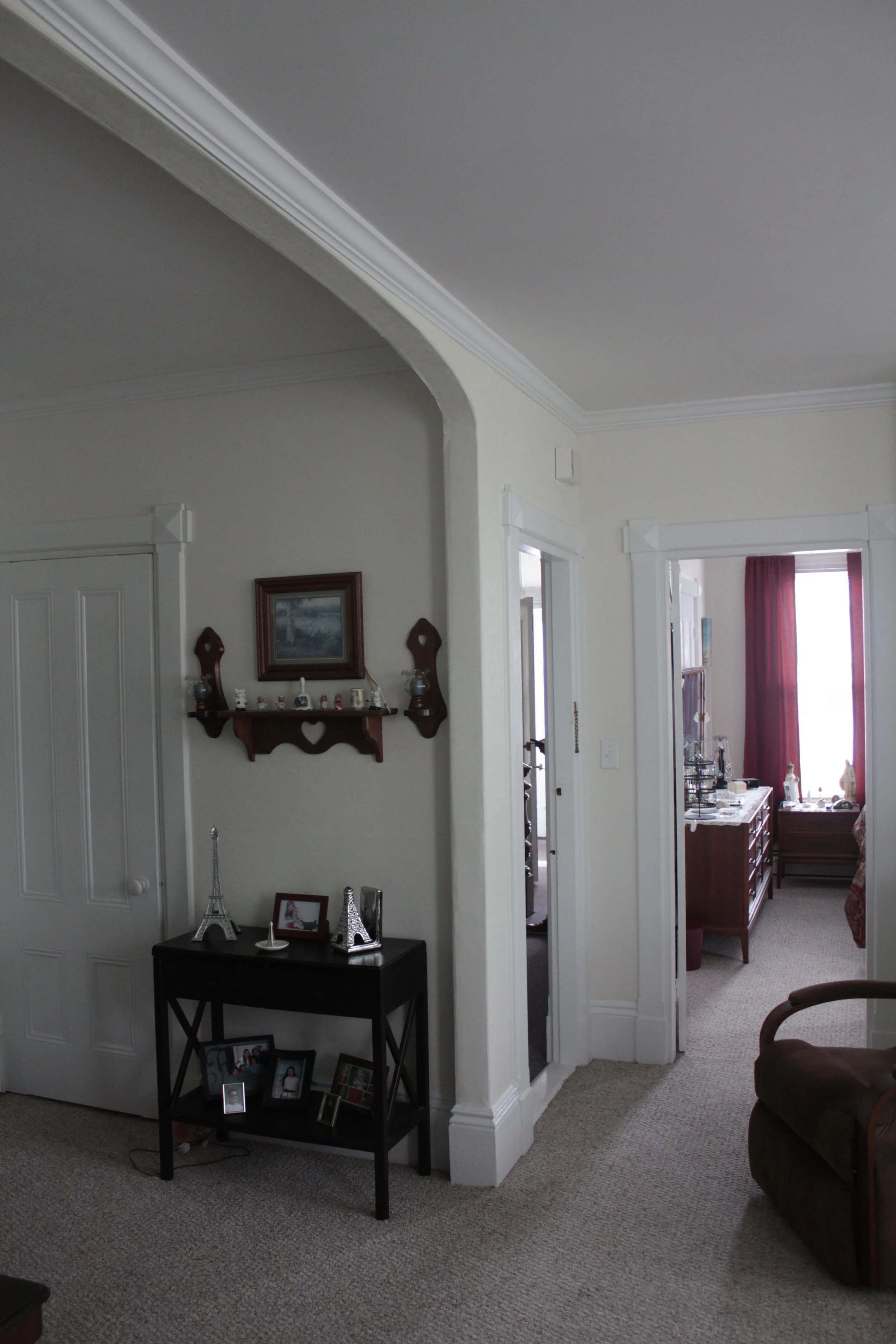 Number 102 is gorgeous with archways, private drive, office, pantry, porch and much more. Arbor Vitae line the private driveway leading to your patio and back door. There is ample space for grilling. The apartment is expansive, with office, dining area, large kitchen, pantry + laundry room loaded with cabinets, living area, nooks + built-ins. The bedroom gets morning light and the apartment wraps around to the covered farmers porch.