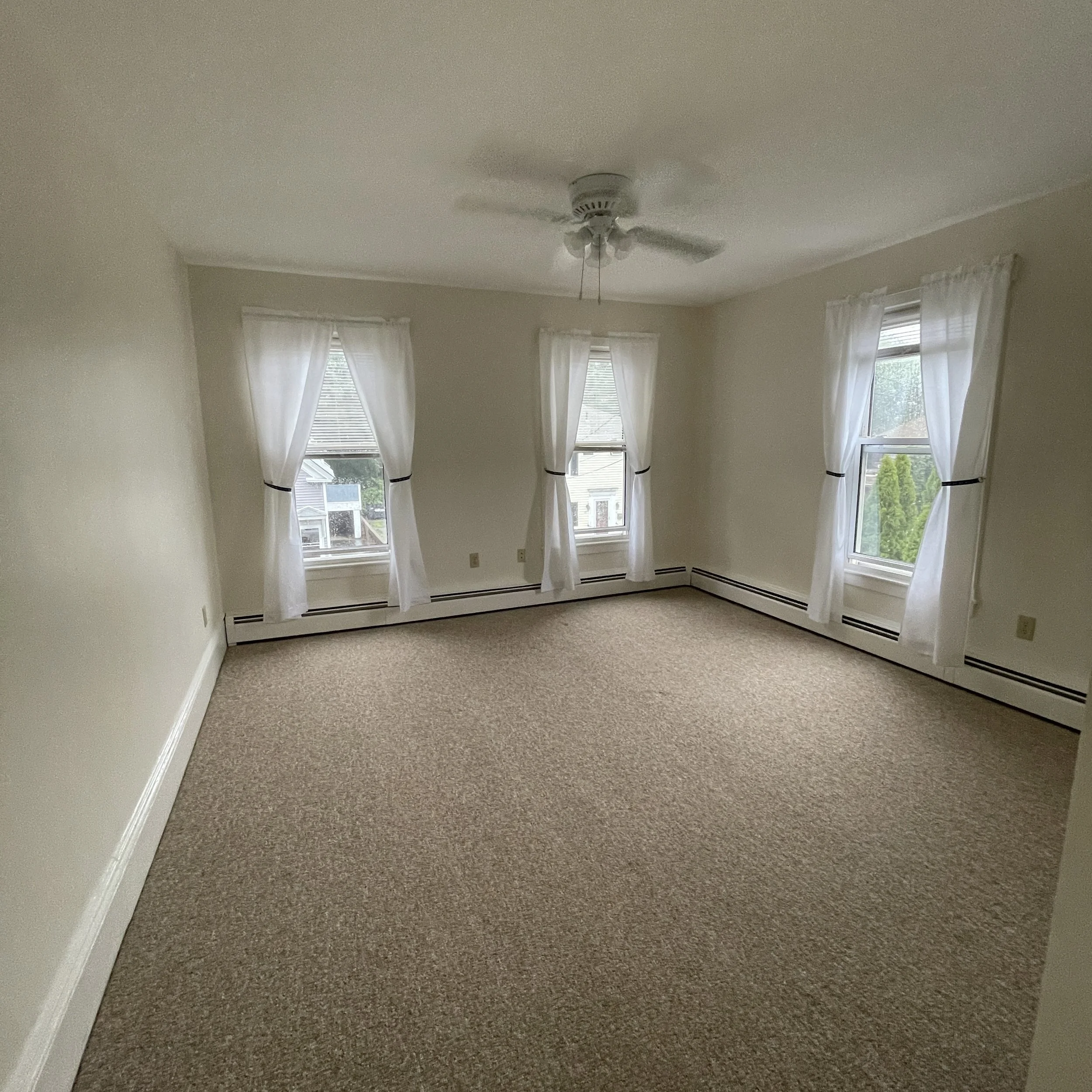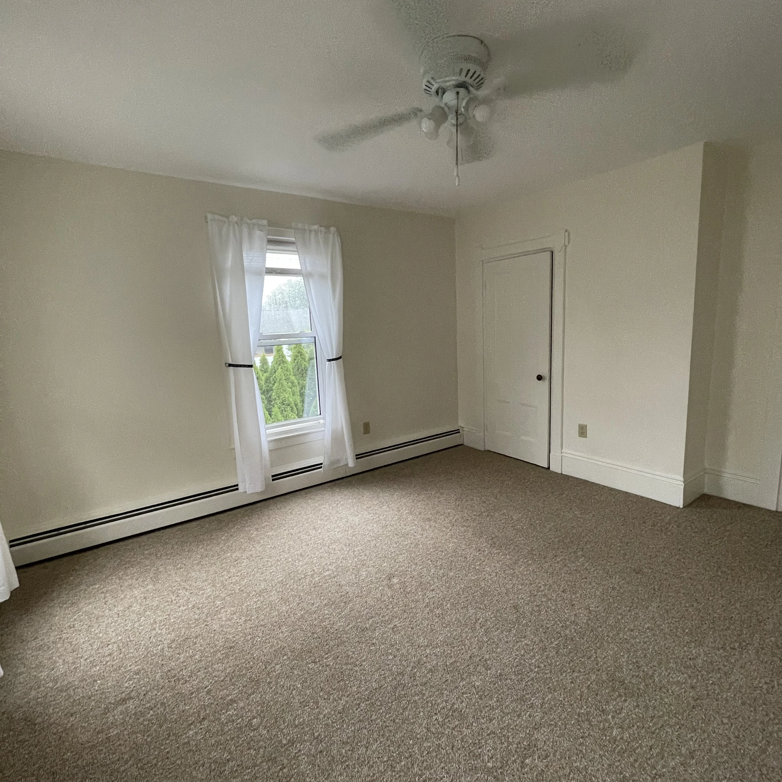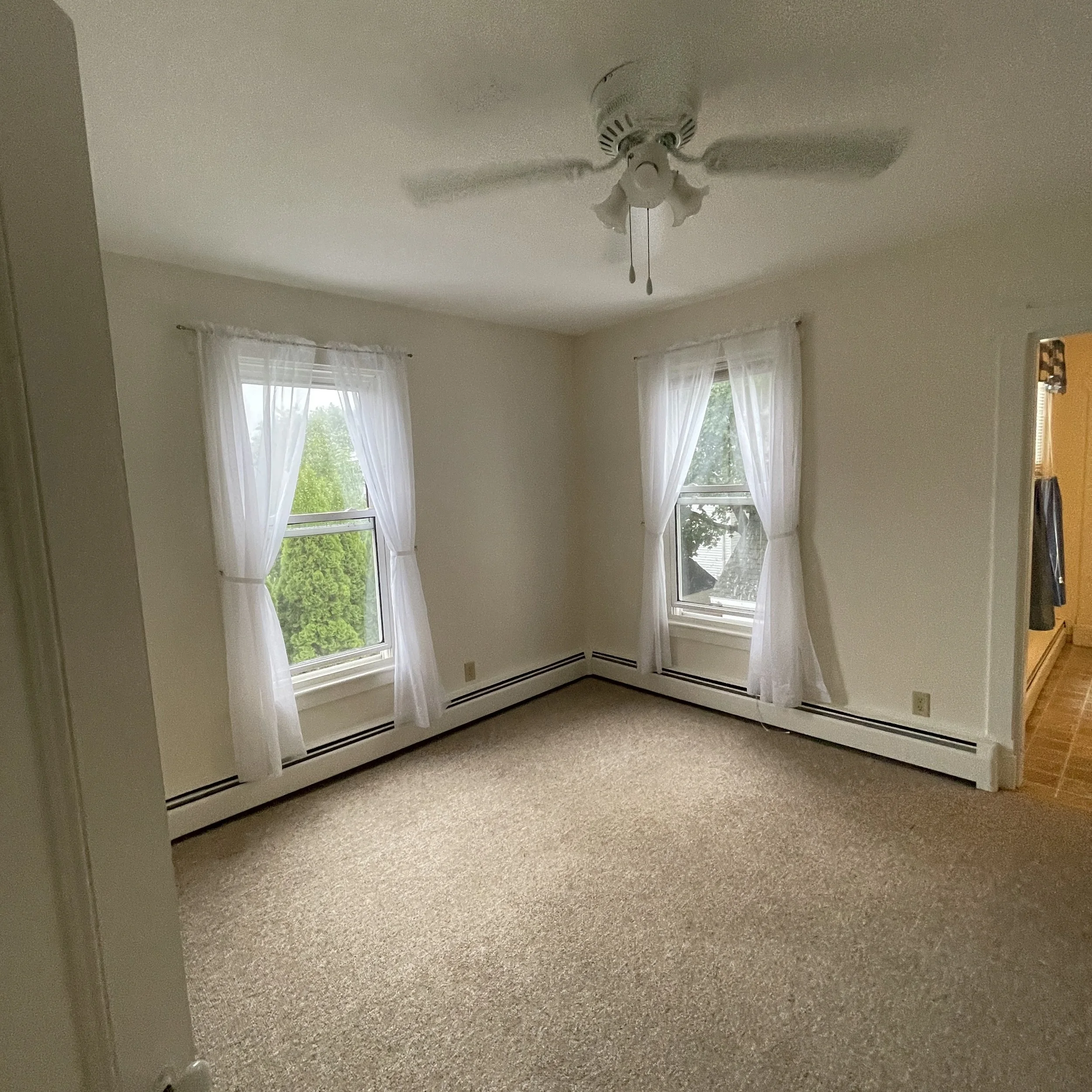 Morning sun streams through the windows that fill the rooms of number 202. Sleep comfortably in a large bedroom with three windows and breezy ceiling fan. Plants will flourish in this apartment. Outside of your bedroom a flowing floor plan carries you from living room to kitchen to the back of the apartment with another room containing washer, dryer and storage space. This cozy apartment also includes two locking closets just outside the front door on the 2nd floor landing for extra storage.